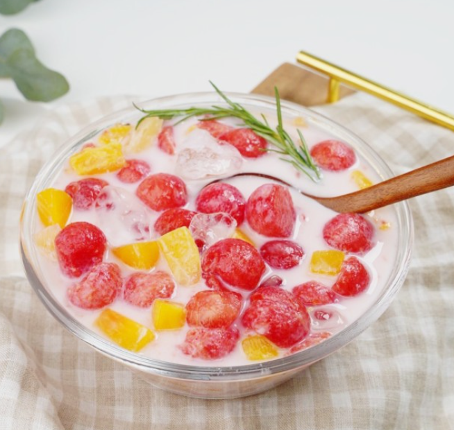 - 볼 모양: 수박 스쿱을 사용해 동그란 볼 모양으로 만들어 예쁘게 담습니다.