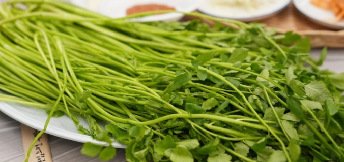 다이어트에 도움: 칼로리가 낮고 식이 섬유가 풍부한 미나리는 다이어트 중인 사람들에게 이상적인 식품입니다.